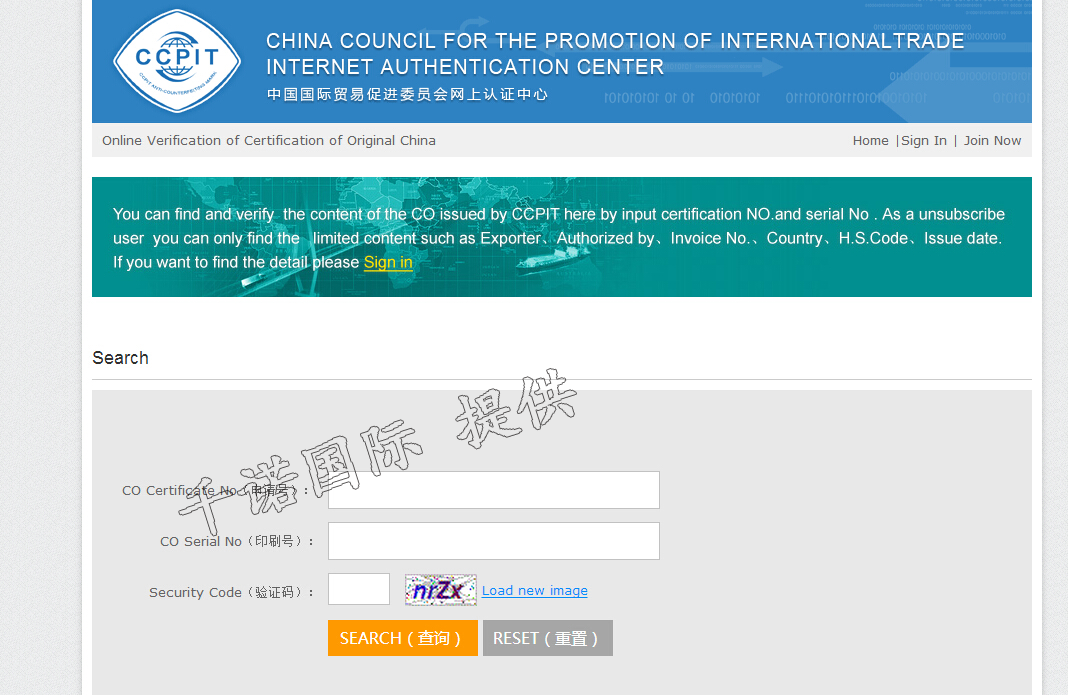 一、如果是在貿促會申請辦理的原產地證,那么請登錄中國國際貿易促進委員會網上認證中心的網站,網址是:http://www.co-ccpit.org/,如下圖所示!